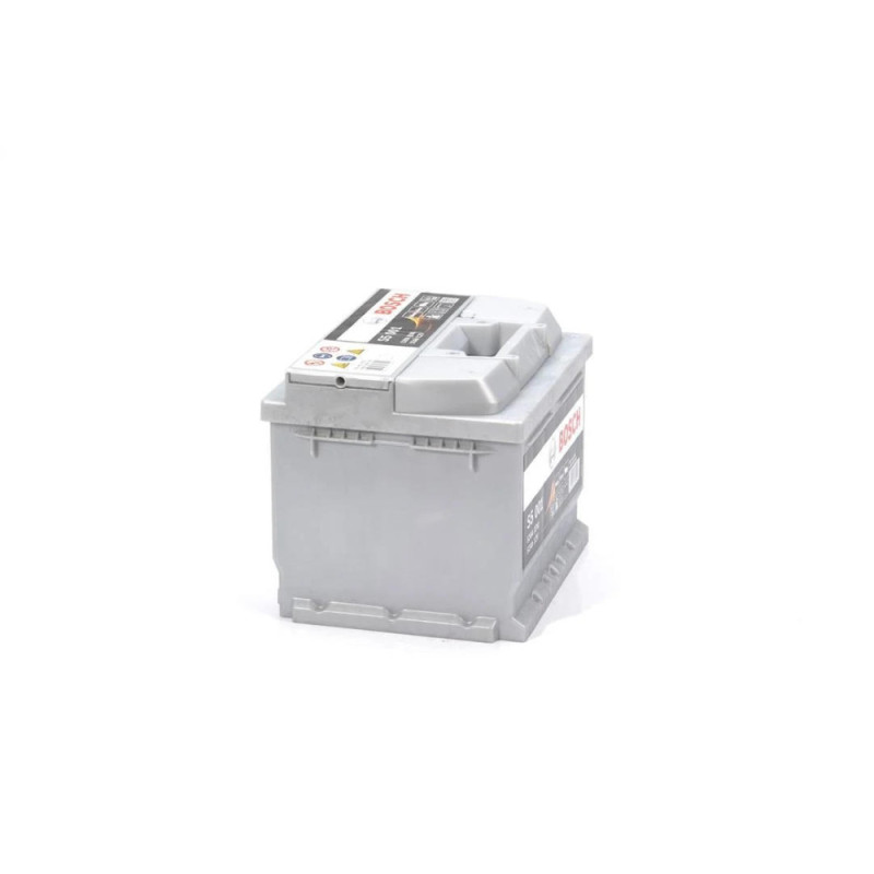 The Bosch S5 12 V 52 Ah 520 A R+ (0 092 S50 010) battery is designed for passenger cars with a standard electrical system. The model features right positive polarity and B00 mounting without additional fixation. The EN starting current is 520 A at a capacity of 52 Ah. Battery dimensions are 207 x 175 x 175 mm, filled weight is 12.30 kg.