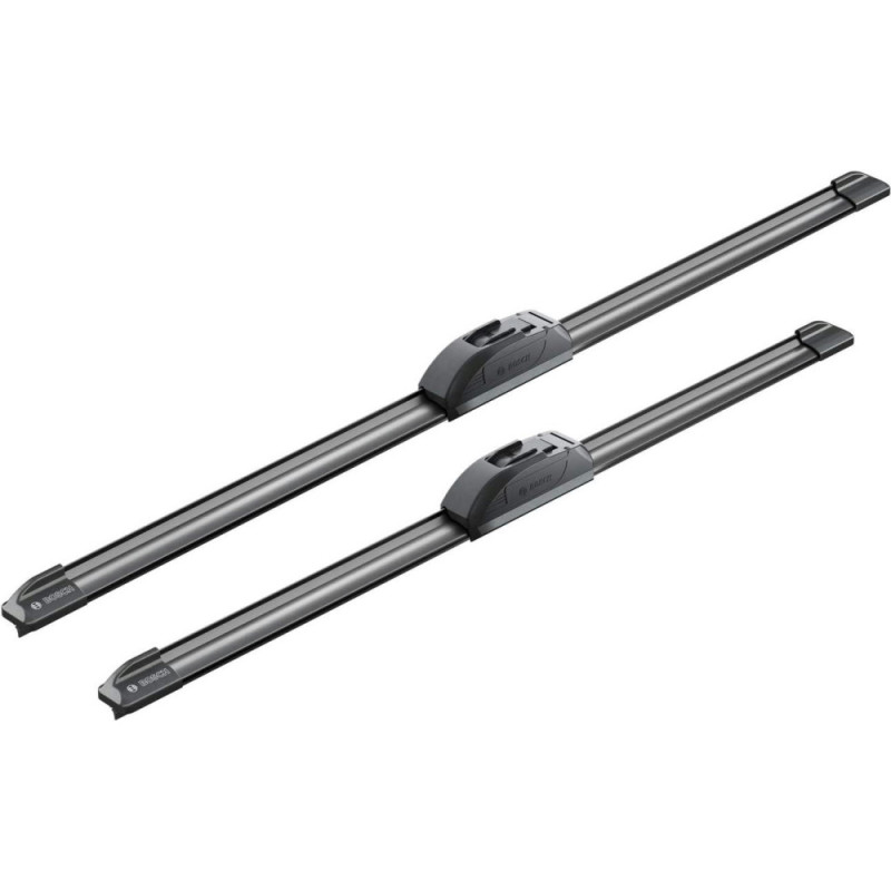 The Bosch Aerotwin frameless windshield wiper set 550/475 mm (3 397 118 904) is an asymmetric RETROFIT premium kit for the windshield. The model features a modern frameless design with a spoiler for stable pressure and effective aerodynamics. The set is designed for left-hand drive vehicles.
