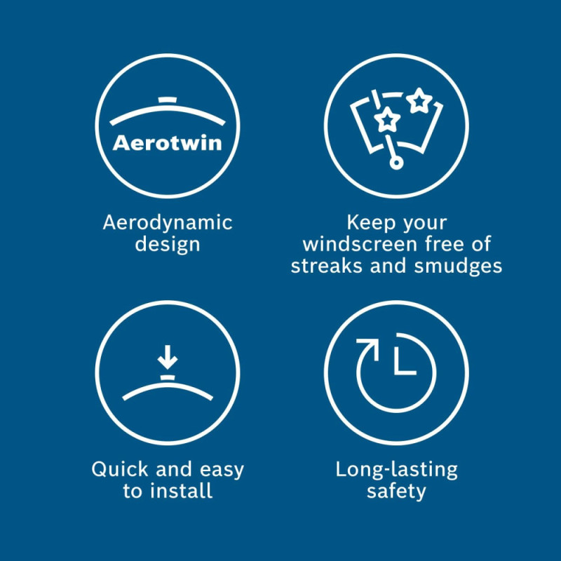 The Bosch Aerotwin frameless windshield wiper set 650/475 mm (3 397 014 116) is an asymmetric premium kit for the windshield. The model features a modern frameless design with a spoiler for tight pressure and excellent aerodynamics. The set is designed for left-hand drive vehicles.