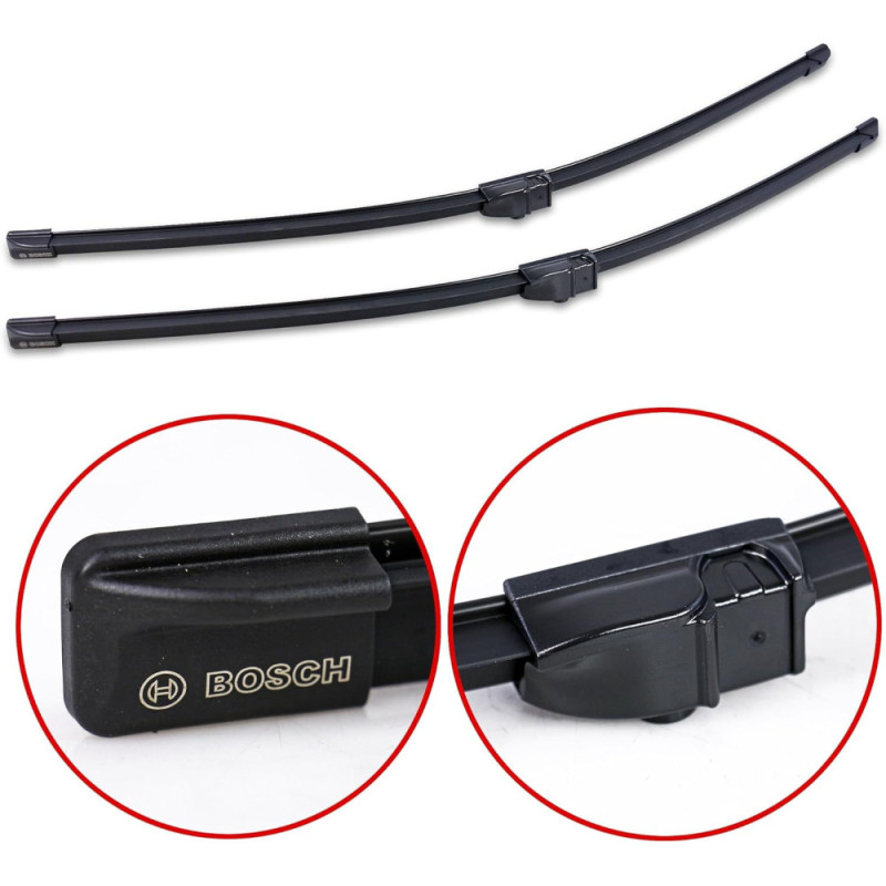 The Bosch Aerotwin frameless windshield wiper set 650/650 mm (3 397 009 034) is a premium kit for the windshield. The model features a modern frameless design with a spoiler for tight pressure and excellent aerodynamics. The set includes two 650 mm blades and is designed for left-hand drive vehicles.