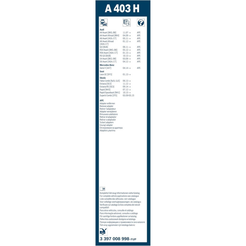 Bosch Склоочисник Aerotwin Rear безкаркасний 400мм задній (3 397 008 998) (3397008998)