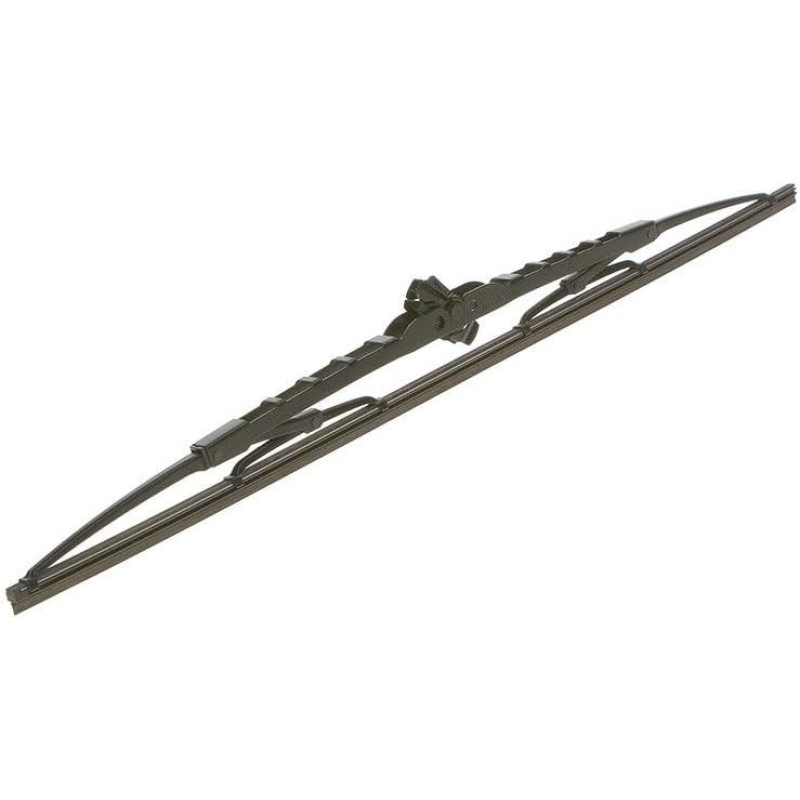 The BOSCH Eco framed wiper has a length of 500 mm and is designed for cleaning the windshield. The framed construction provides reliable and even blade pressure against the surface. The product belongs to the ClassicWiper series. Hook attachment simplifies installation on compatible vehicles.