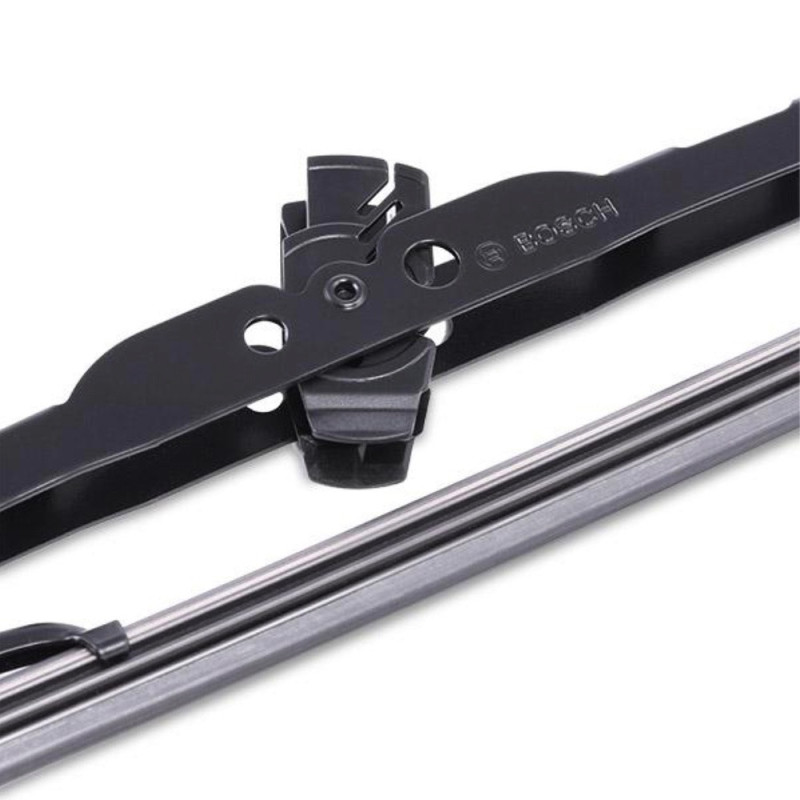The BOSCH Eco framed wiper has a length of 600 mm and is designed for cleaning the windshield. The framed construction provides reliable blade pressure against the surface. The product belongs to the ClassicWiper series. Hook attachment makes installation simple on many vehicle models.