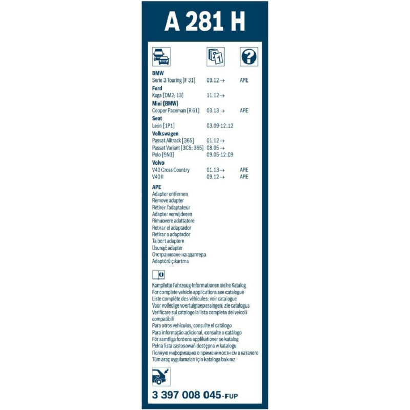 Bosch Склоочисник Twin безкаркасний 280мм задній (3 397 008 045) (3397008045)