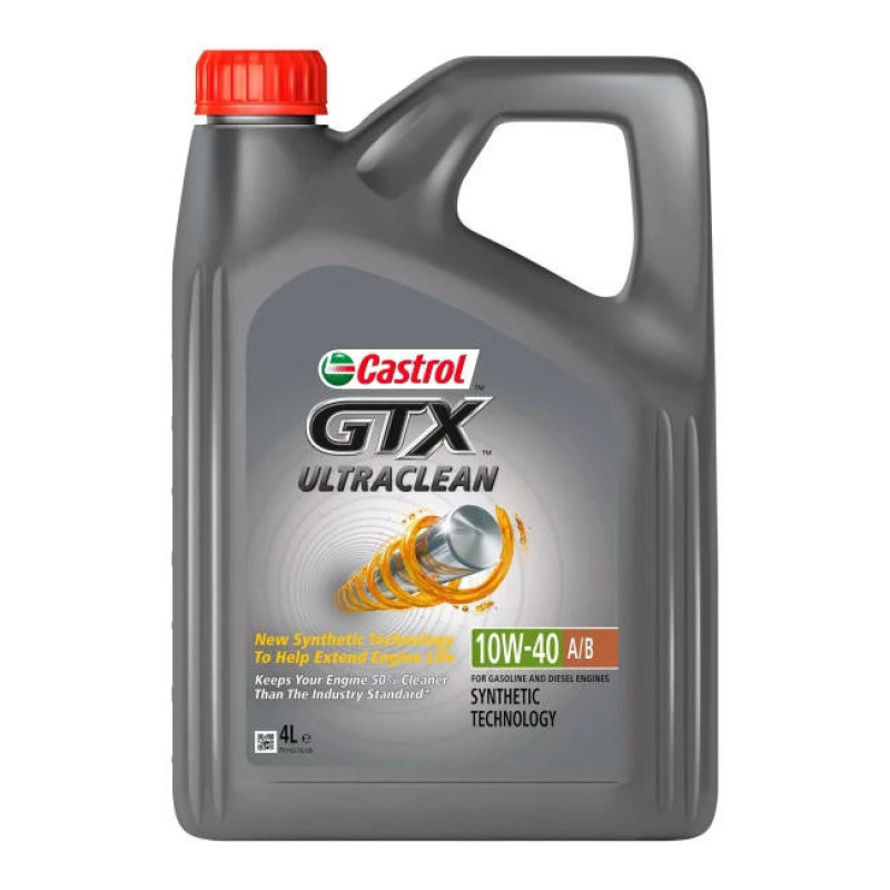 Castrol GTX Ultraclean 10W-40 motor oil in a 4 L canister is designed for gasoline and diesel engines. The semi-synthetic base provides stable lubrication across various operating conditions. The 10W-40 viscosity is suitable for higher mileage engines and mixed driving conditions. Compliance with ACEA and API standards ensures broad compatibility. The formulation focuses on maintaining engine cleanliness.