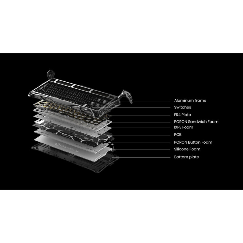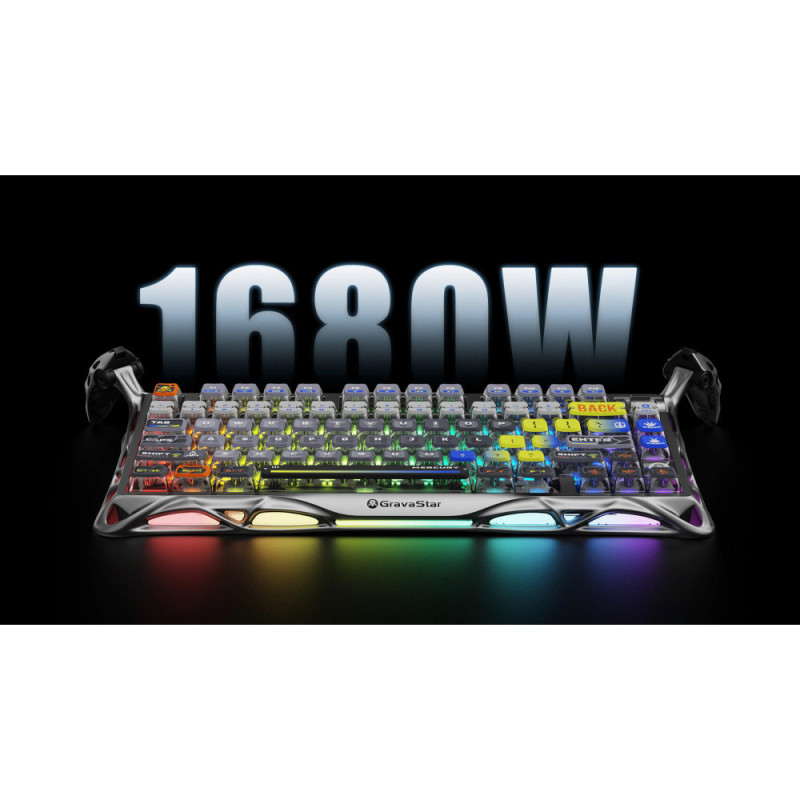 75% mechanical keyboard with GravaStar x Kailh Speedy Mint linear switches, gasket mount, and tri-mode connectivity. Provides quick response, dual-zone RGB lighting, and an 8000 mAh battery for extended use. Suited for gaming and typing where premium build, smoothness, and Interstellar Silver aesthetics stand out.