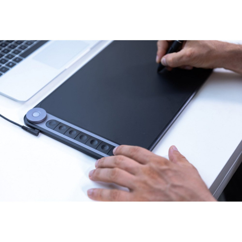 The Huion Q620M is a modern graphics tablet featuring a spacious 10.5"x6.5" working area and reliable wireless connectivity. Its multifunctional Dial Controller offers quick access to creative adjustments and tool navigation. The battery-free PW500 pen supports tilt and pressure recognition for natural, expressive strokes. LED indicators allow users to track power status at a glance. Lightweight and well-crafted, this tablet provides a comfortable environment for digital creativity.