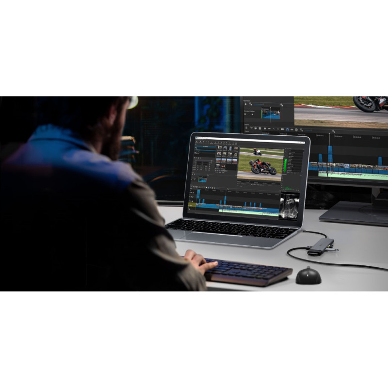 The TP-Link UH7021C USB hub expands a single USB-C port into seven versatile interfaces. HDMI with 4K@60Hz support enables connection to an external display with high resolution. Three USB 3.0 ports provide fast data transfer up to 5 Gbps. UHS-I SD and microSD slots allow simultaneous card access. The aluminum housing and braided cable are suitable for everyday use.
