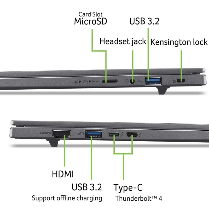 The Acer Aspire 16 A16-52M is a stylish, lightweight laptop with a 16-inch WUXGA+ OLED display (2048x1280, 120Hz) for vibrant, crisp visuals. Powered by an Intel Core Ultra 7 258V processor (up to 4.8 GHz, 8 cores), 32GB LPDDR5X, 1TB PCIe Gen4 SSD, and Intel Arc Graphics 140V for performance in office tasks, multimedia, and light AI workloads. FHD webcam, Wi-Fi 7, dual USB-C, HDMI, and Linux ESHELL offer flexibility and modern connectivity. The grey chassis at 1.49 kg is ideal for professionals and students valuing portability and screen quality.