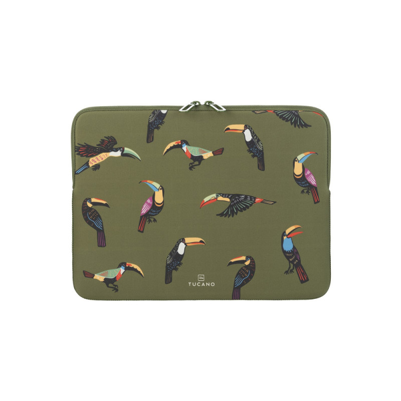 The Tucano Tucani 15"/16" sleeve celebrates Tucano’s 40th anniversary. Made of durable neoprene and decorated with a vivid toucan print, it combines style and practicality. The Anti-Slip System® keeps the laptop securely in place during transport. Flat-Lock stitching ensures a slim, tight fit. The soft inner lining protects the device from scratches.