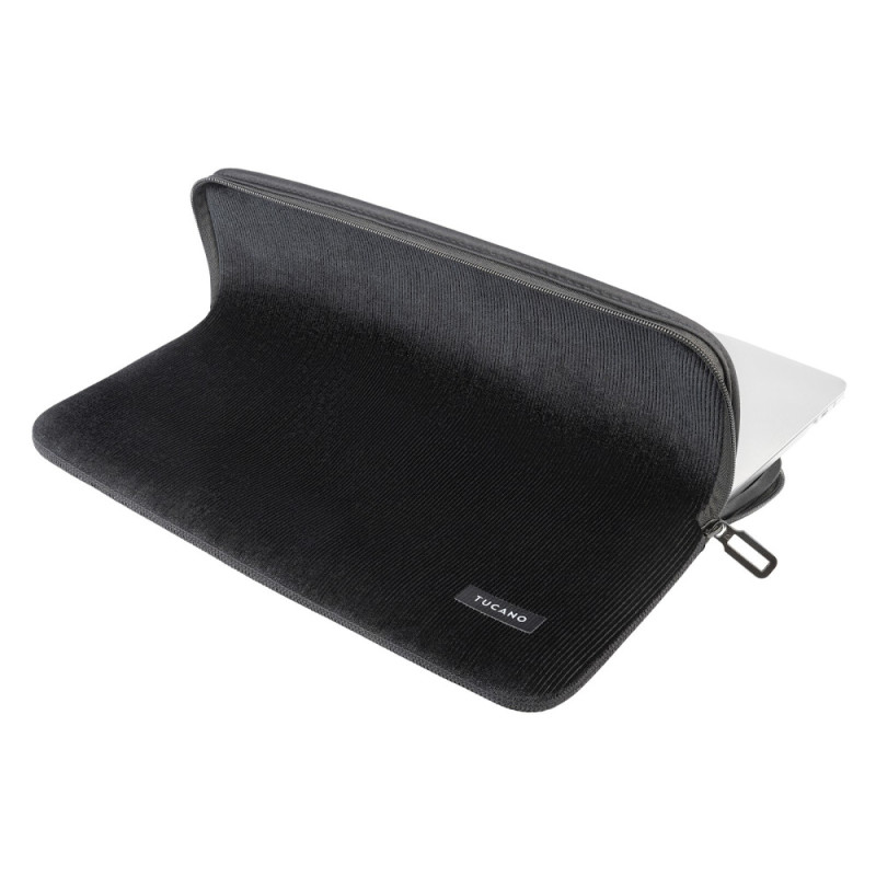 The Tucano Velluto sleeve for MacBook Pro 16" combines neoprene and velvet for flexible, soft protection. The Anti-Slip System® keeps the laptop securely in place, preventing slipping. A perimeter buffer separates the zipper from the device to avoid scratches and absorb impact. The Flat-Lock stitching ensures a slim, precise fit. The soft lining protects the laptop’s surface from marks and abrasions.