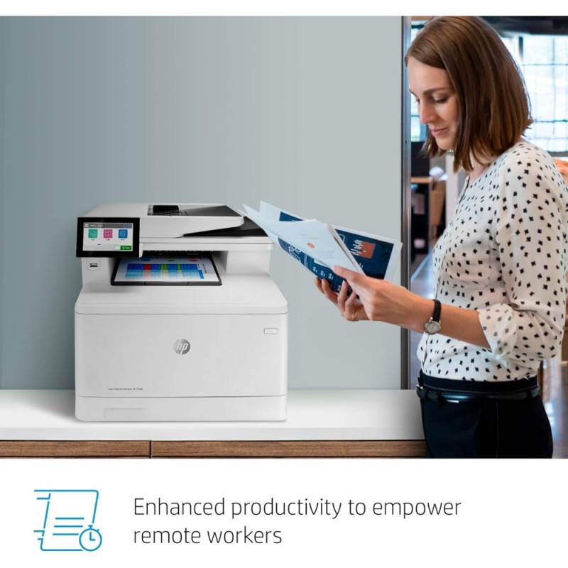 The HP Color LaserJet Enterprise M480f (3QA55A) is an A4 color laser MFP for printing, copying, scanning, and faxing. It offers a speed of up to 27 ppm (b/w and color), 600x600 dpi resolution, and automatic duplexing. Equipped with 2GB memory, Wi-Fi Direct, Apple AirPrint, NFC, and scanning to SharePoint/email. With 250+50-sheet input trays, a 50-sheet DADF, and support for 60-163 g/m² paper, it’s highly versatile. Ideal for offices with a duty cycle of up to 55,000 pages per month.