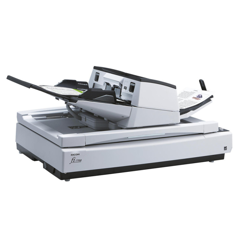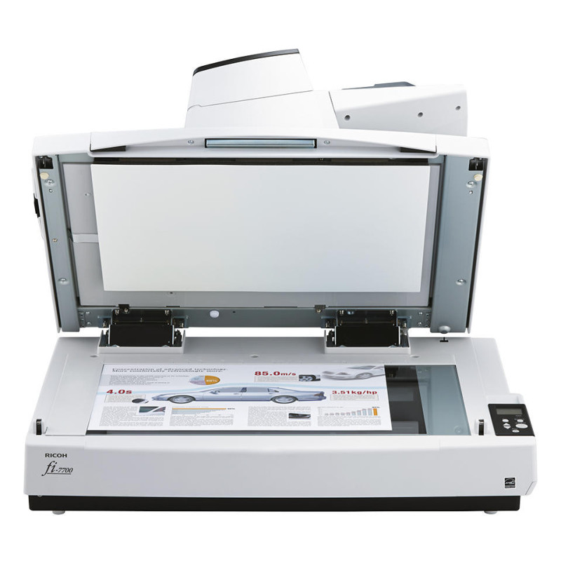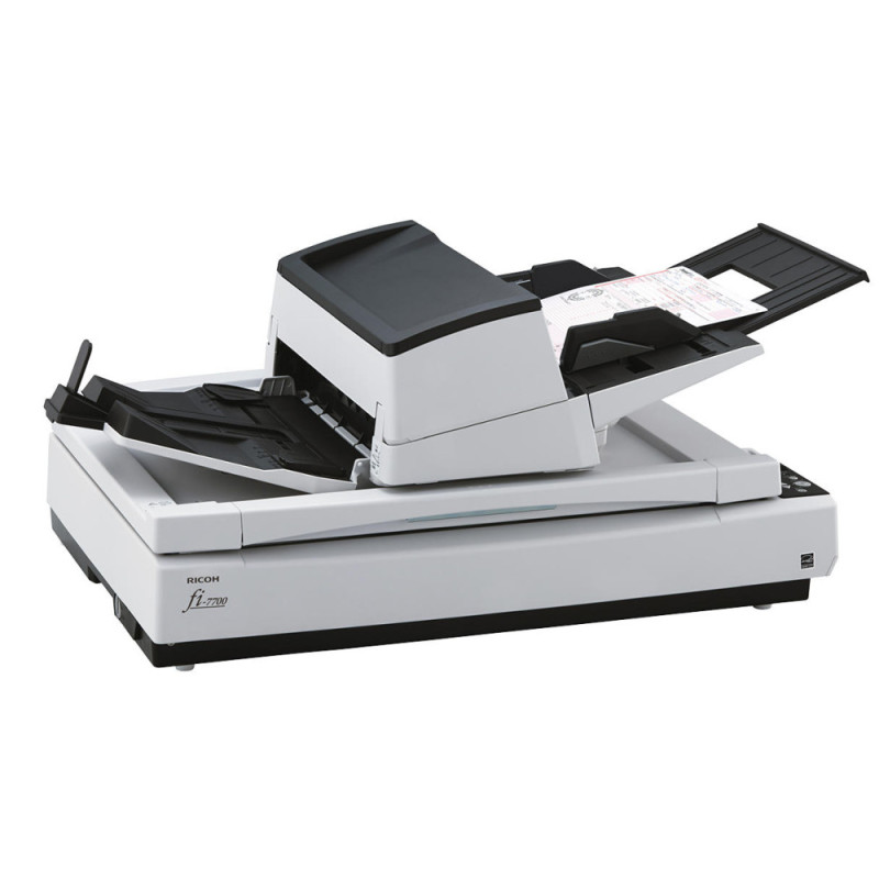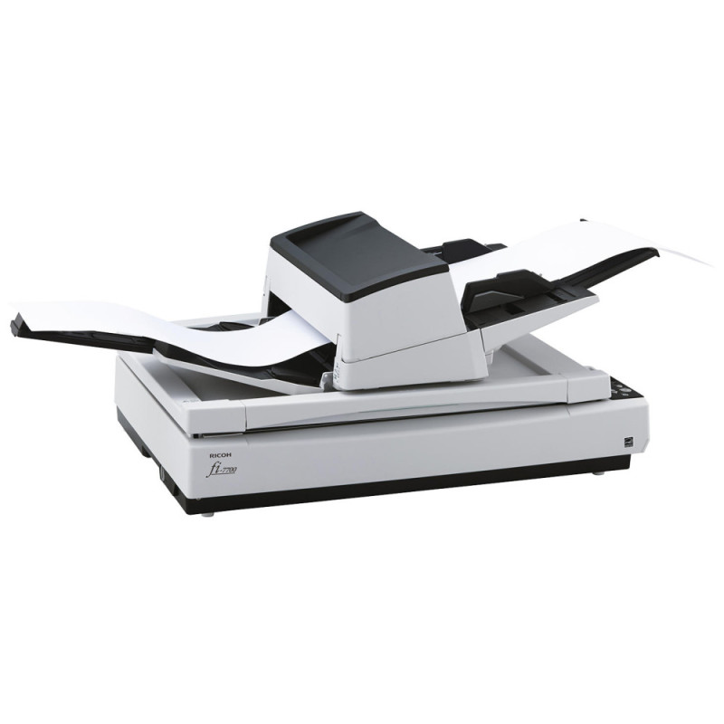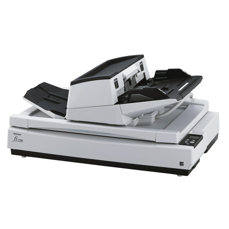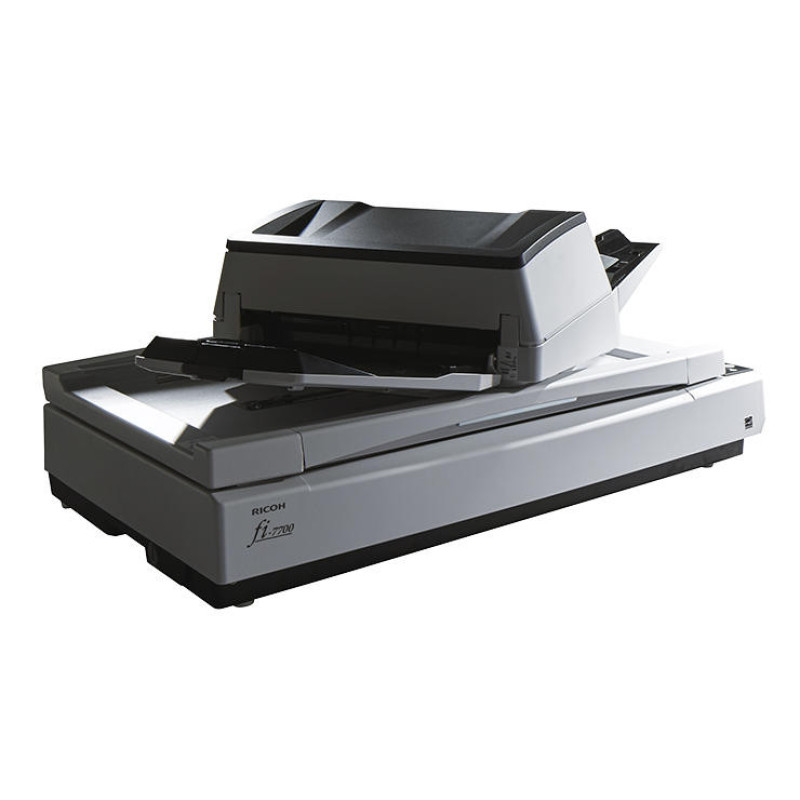 The Ricoh fi-7700 is a professional A3 document scanner equipped with an automatic document feeder and a flatbed unit. It supports duplex scanning and handles a wide range of document types and sizes. High scanning speeds enable efficient digitization of paper workflows. LED illumination and advanced image processing functions enhance output consistency. The scanner is designed for professional office environments.