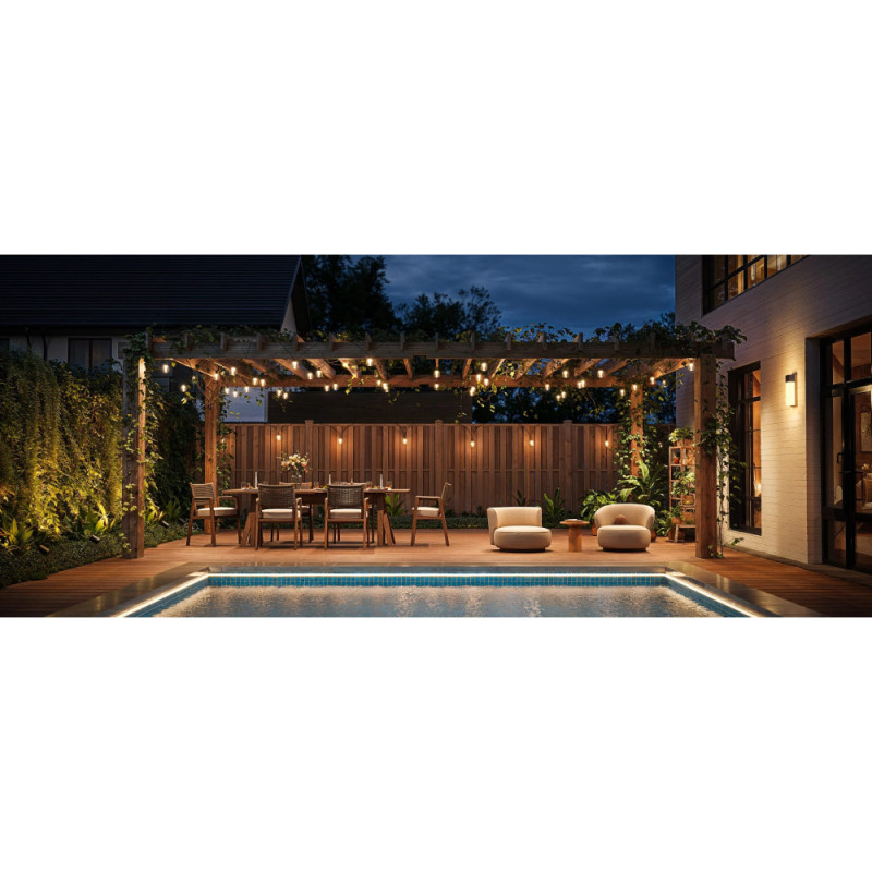 The Govee H7025 outdoor smart bulb string lights bring vibrant and warm illumination to any exterior space. With RGBIC lighting, warm white output, and multiple preset scenes, they adapt to calm evenings or lively gatherings. The lights support app control, voice assistants, and music sync for added versatility. Weather-resistant construction ensures durability throughout outdoor use.