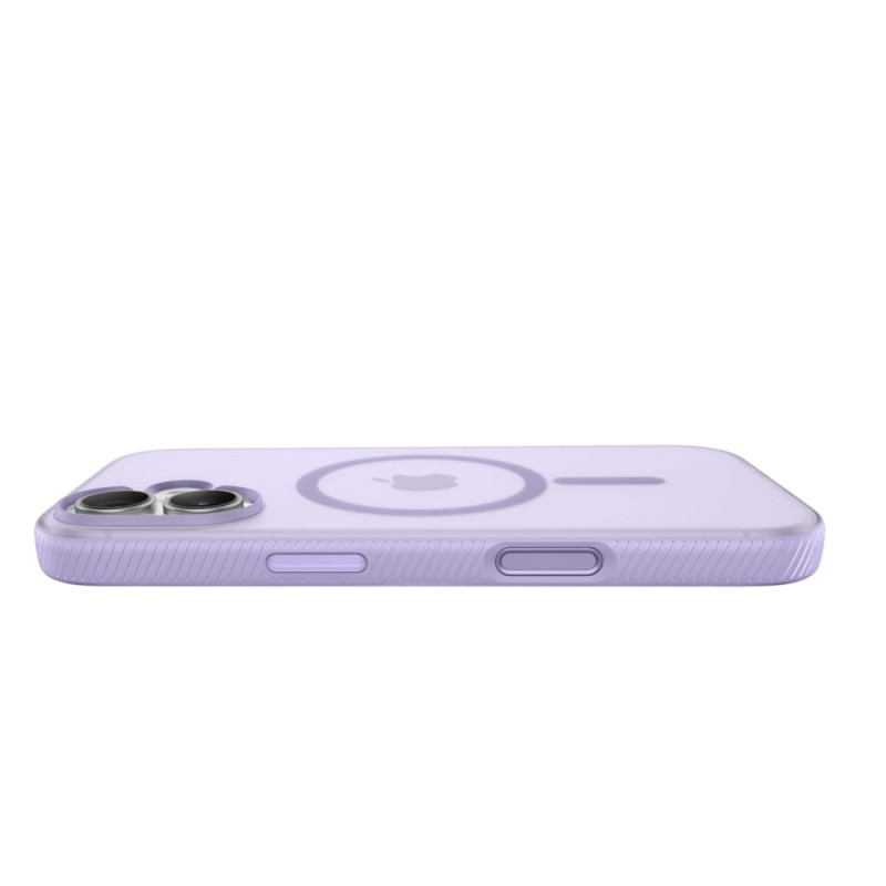 Belkin Grip Series for iPhone 17 (MSA034HQLV, Lavender) — delicate magnetic case in soft lavender with anti-slip texture, drop protection up to 2 m, and full MagSafe compatibility. Slim TPU body (from recycled materials), raised edges, polished buttons, and semi-transparent soft-touch finish. Perfect balance of aesthetics, comfort, and reliability — for those seeking stylish and eco-friendly protection.