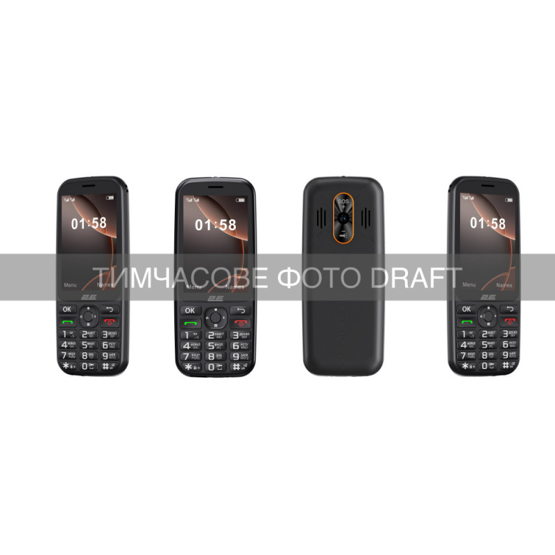 Additionally:Flashlight, Speed dialing, Confidentiality, Two numbers per contact, Setting a personalized melody for a contact, Black list, Photocontacts, Games, Phone book for 1000 numbers, File manager, SOS mode, SMS memory: 200, Calculator, Alarm clock (5 pcs), Text notes, Timer, Stopwatch, Calendar (with event planner), Vibrocall, FM radio, MP3 player, Алфавіти УКР/ENG, Диктофон, Import/Export via Bluetooth or VCF file, Мови: Українська, Польська, Румунська, Російська, Англійська