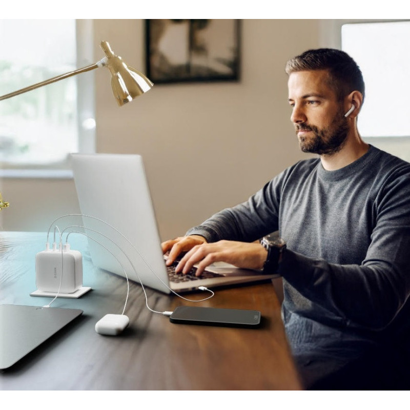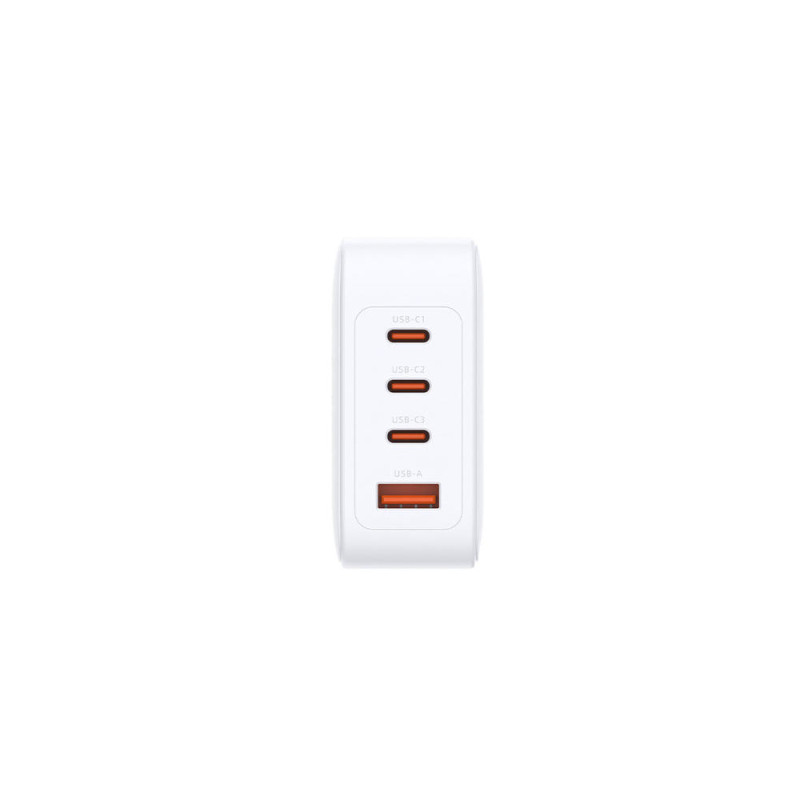 Powerful and compact GaN charger designed for modern workspaces. Delivers up to 140 W output using PD 3.1 or QC 4.0 standards. Equipped with 3 USB-C and 1 USB-A port to charge up to four devices simultaneously. Built-in protections guard against overcurrent, overvoltage, over temperature, overcharge, and short circuits.