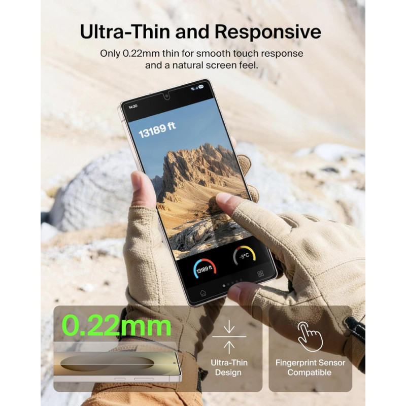 Belkin Titan EcoGuard screen protector is designed for Samsung Galaxy S26 Ultra. The anti-reflective coating helps maintain clarity and color in bright lighting. The slim design is reinforced with titanium for added strength. It supports fingerprint recognition. The installation system ensures precise placement on the screen.