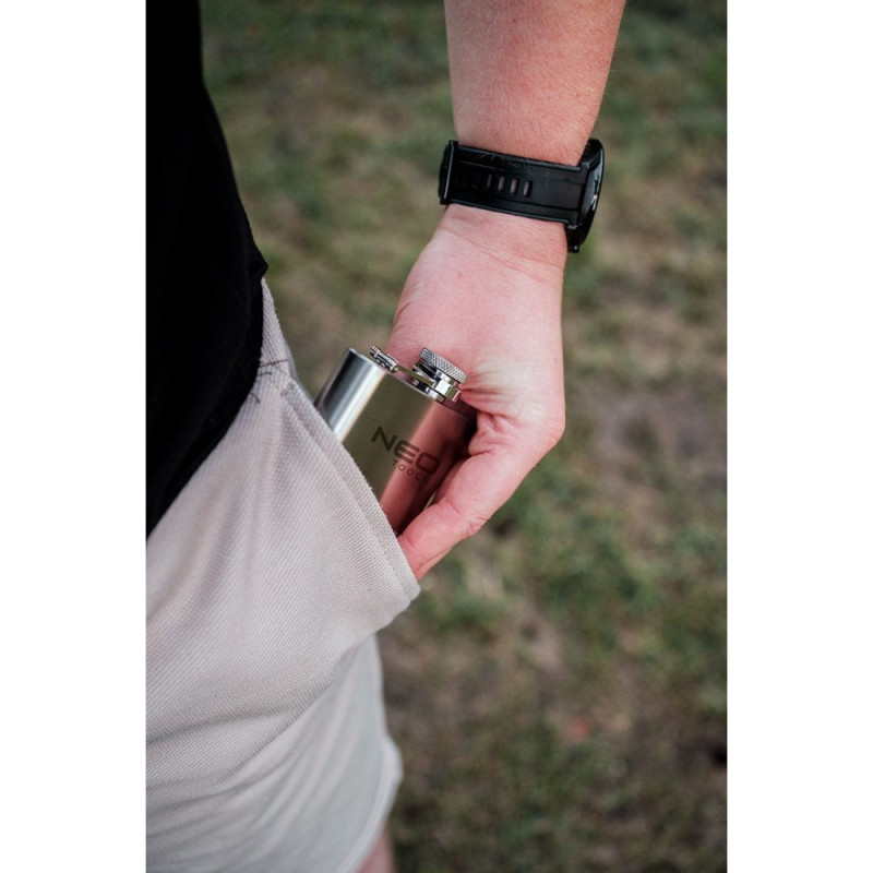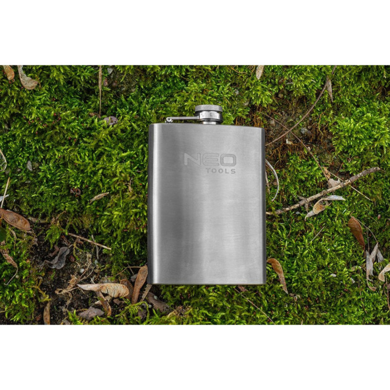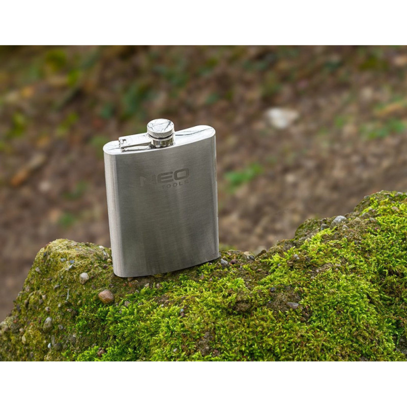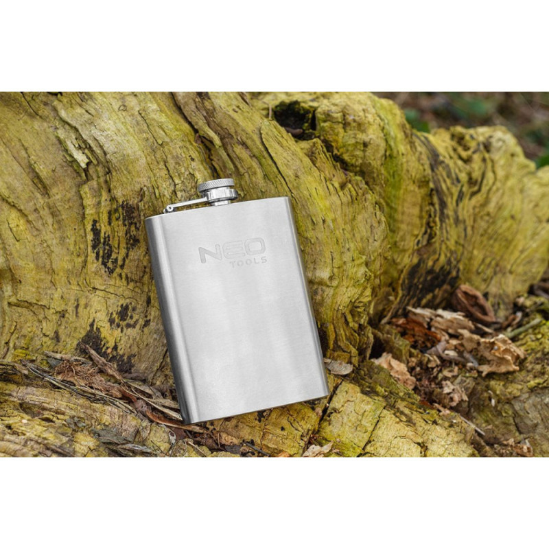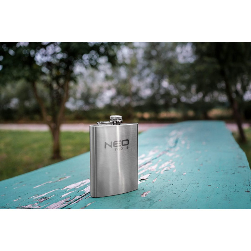 The Neo Tools 63-174 bottle is a compact 220 ml stainless steel flask for everyday use. Its durable steel construction provides resistance to wear and mechanical impact. The flat shape makes it easy to carry in a pocket or bag. Suitable for short trips, outdoor walks, or carrying beverages on the go.
