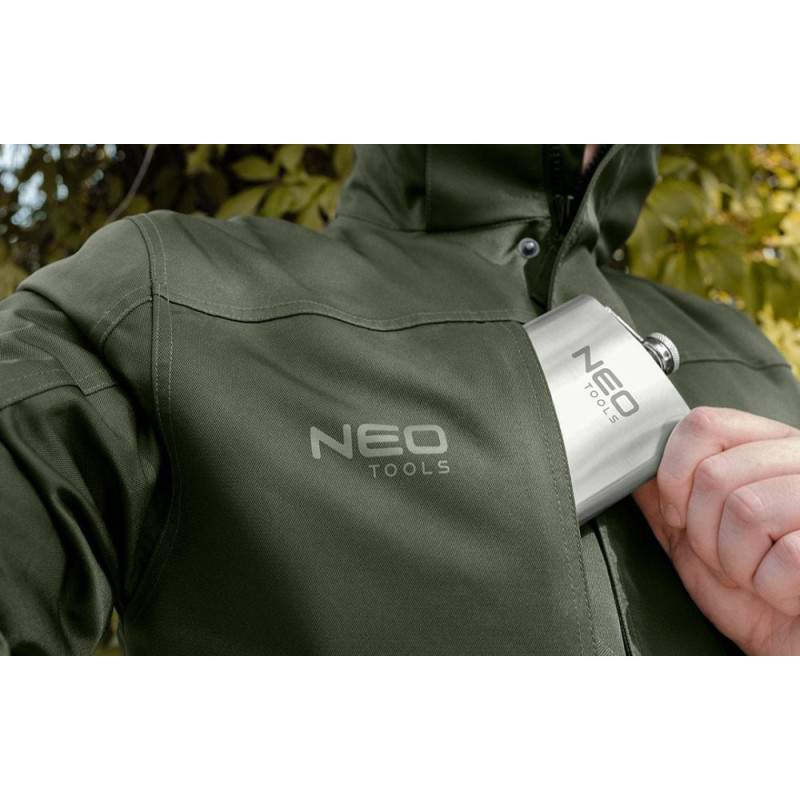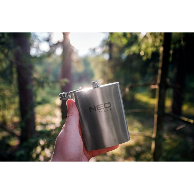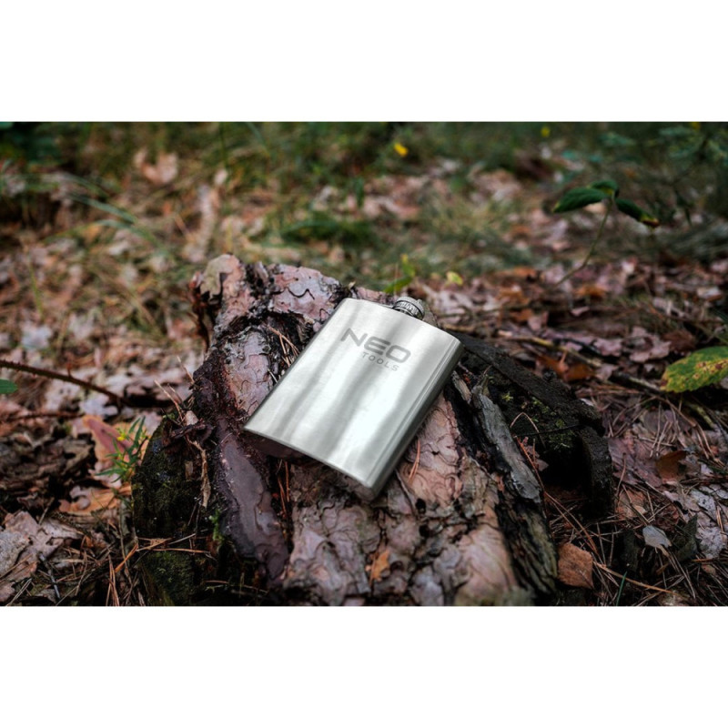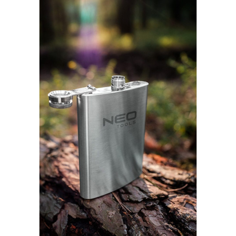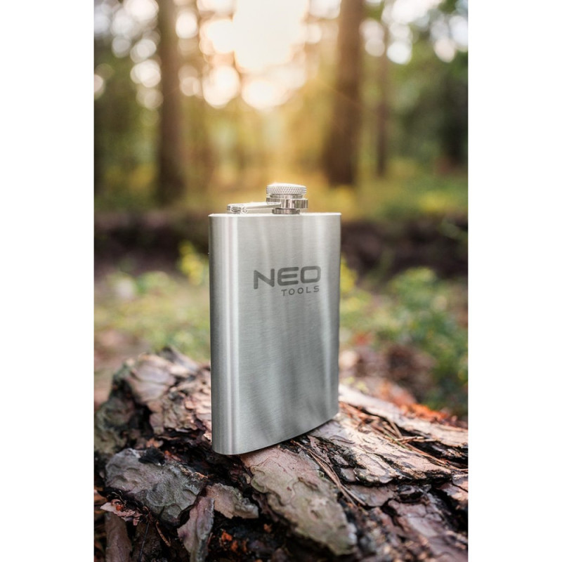 The Neo Tools 63-174 bottle is a compact 220 ml stainless steel flask for everyday use. Its durable steel construction provides resistance to wear and mechanical impact. The flat shape makes it easy to carry in a pocket or bag. Suitable for short trips, outdoor walks, or carrying beverages on the go.