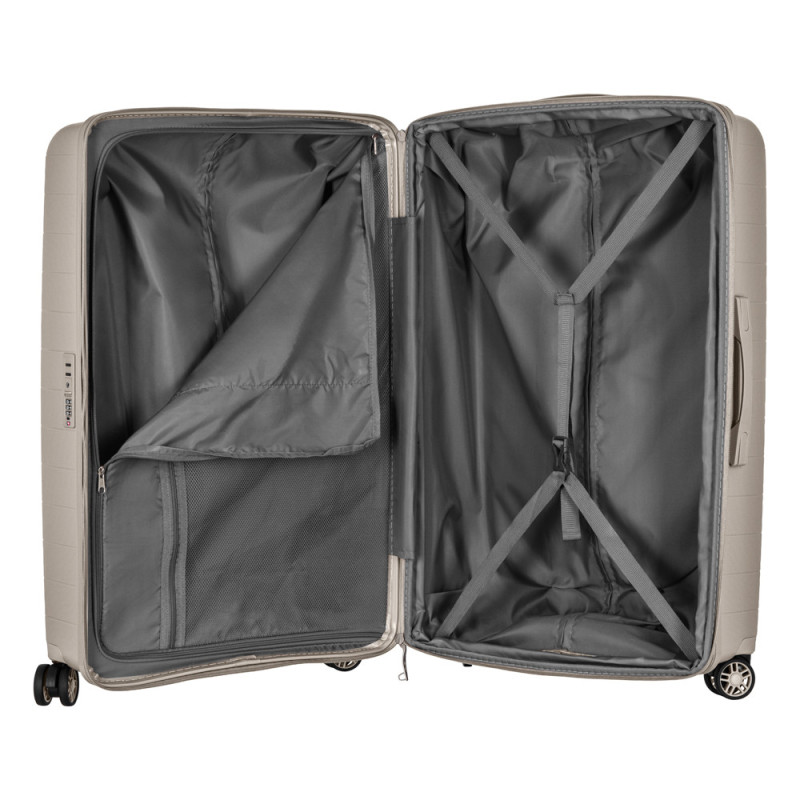 possibility of expansion (increase in volume), double wheels, dividers and adjustable packing straps inside