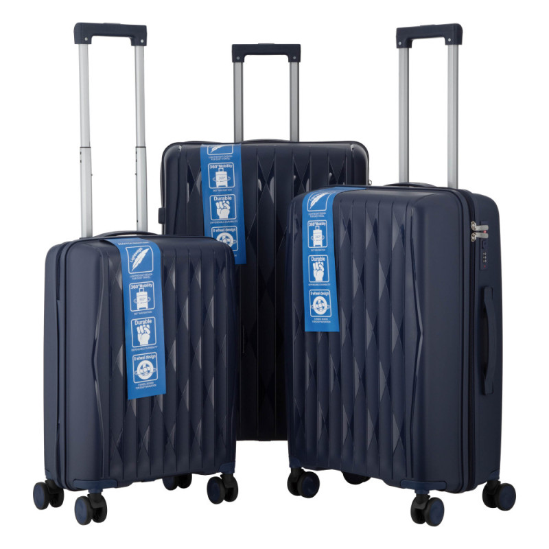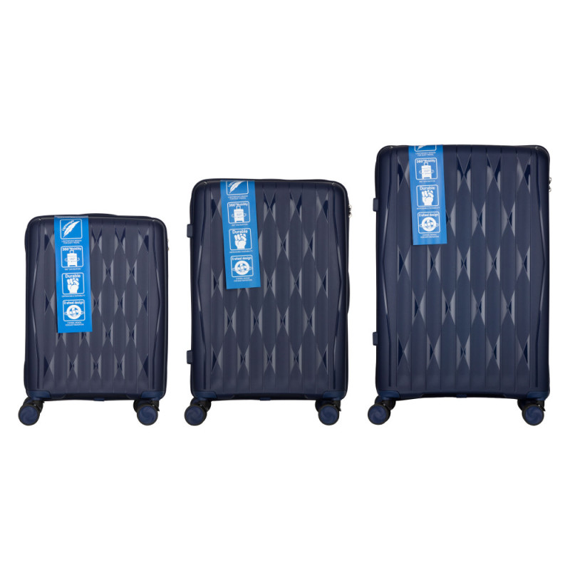 2E 2E Suitcase set 3in1, M7979, polypropylene, (L+M+S), lock (not TSA), anti theft zipper, 4 wheels, dark blue (2E-PP-M7979-SET3-DB)