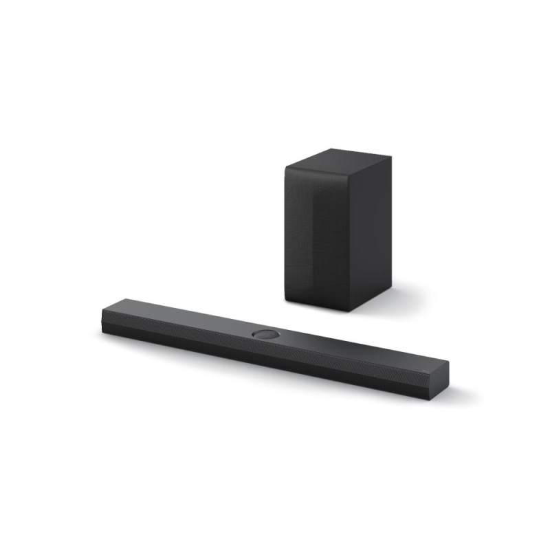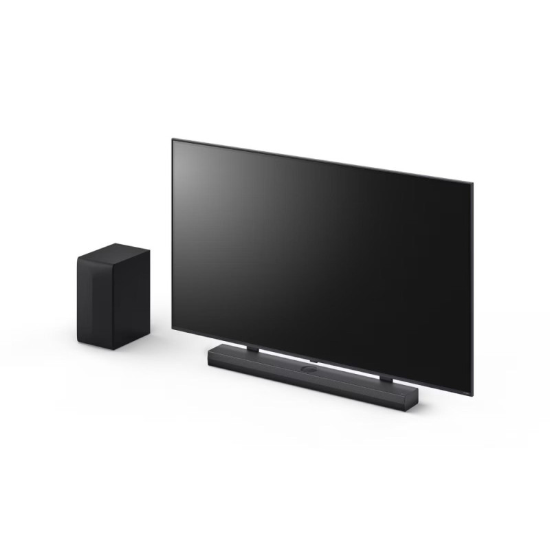 The LG S70TY soundbar is a 3.1.1-channel system with 400 W total power and Dolby Atmos support. It features an upward-firing center channel and a wireless subwoofer for immersive 3D sound. The soundbar pairs well with LG TVs via WOW Orchestra technology and supports HDMI ARC, Bluetooth, and USB.