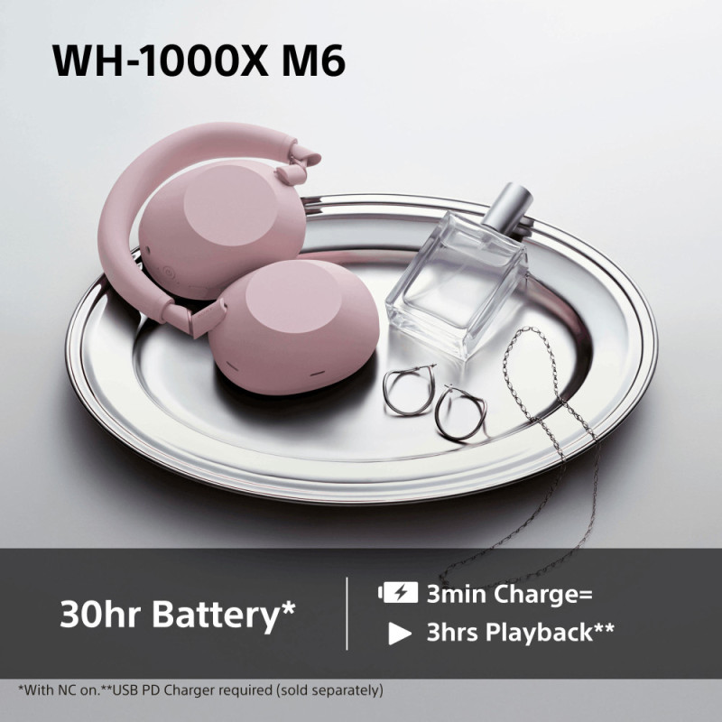 Sony WH-1000XM6 Headphones Over-ear BT 5.3, ANC, Hi-Res, AAC, LDAC, LC3, Wireless, Mic, Pink (WH1000XM6P.E)