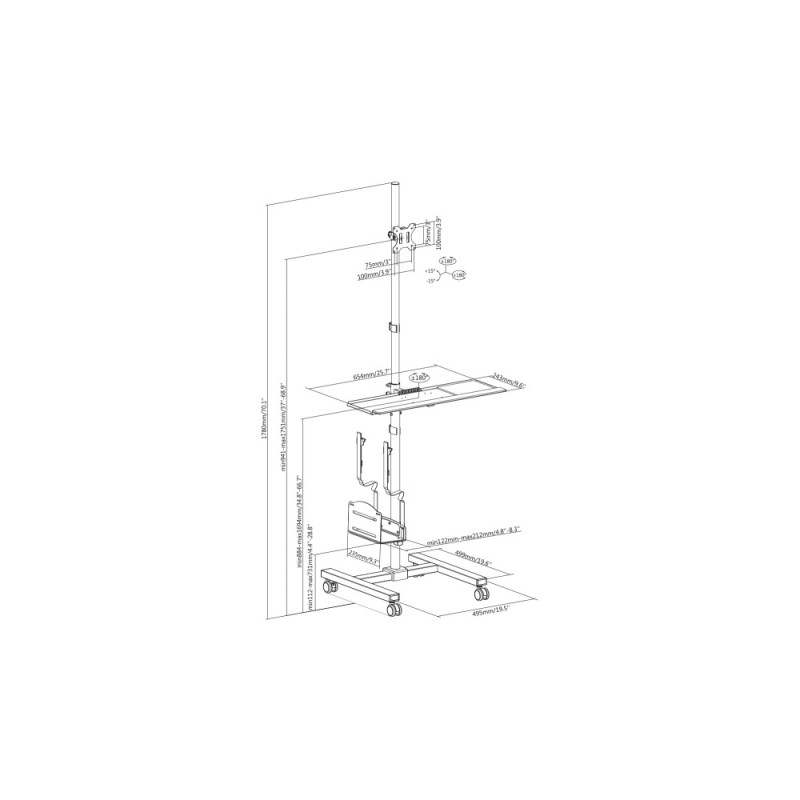 Digitus Mobile Workstation (Monitor Mount, PC Holder) max. 8 kg load,32 screen max., black (DA-90374)