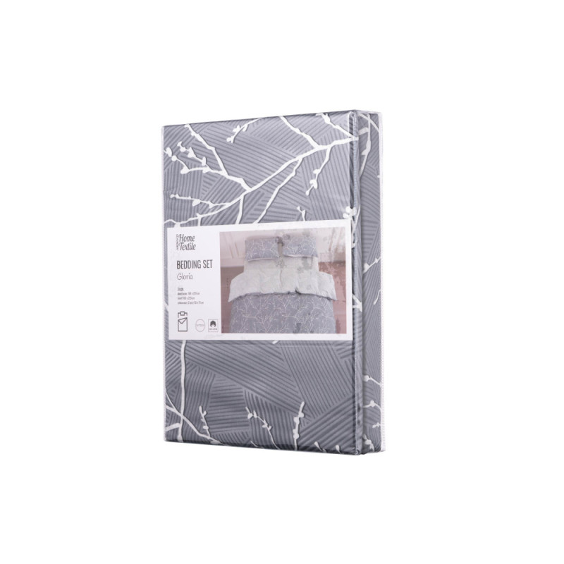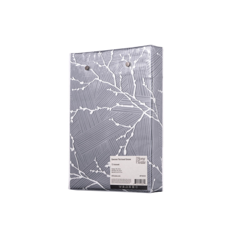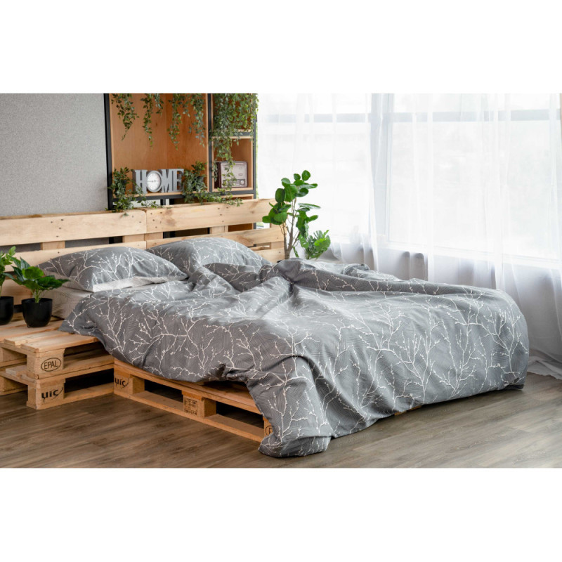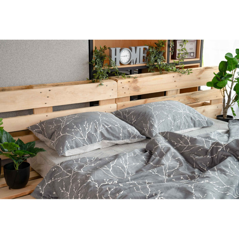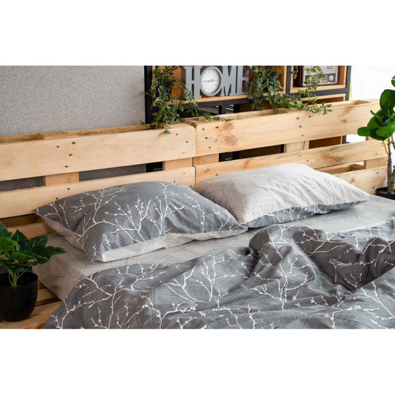 ARDESTO Bedding set 1.5 Gloria, sateen, duvet cover160x220cm, sheet 160x220cm, pillowcases (2) 50x70cm, 100% cotton, gray branch (ART1622LD)