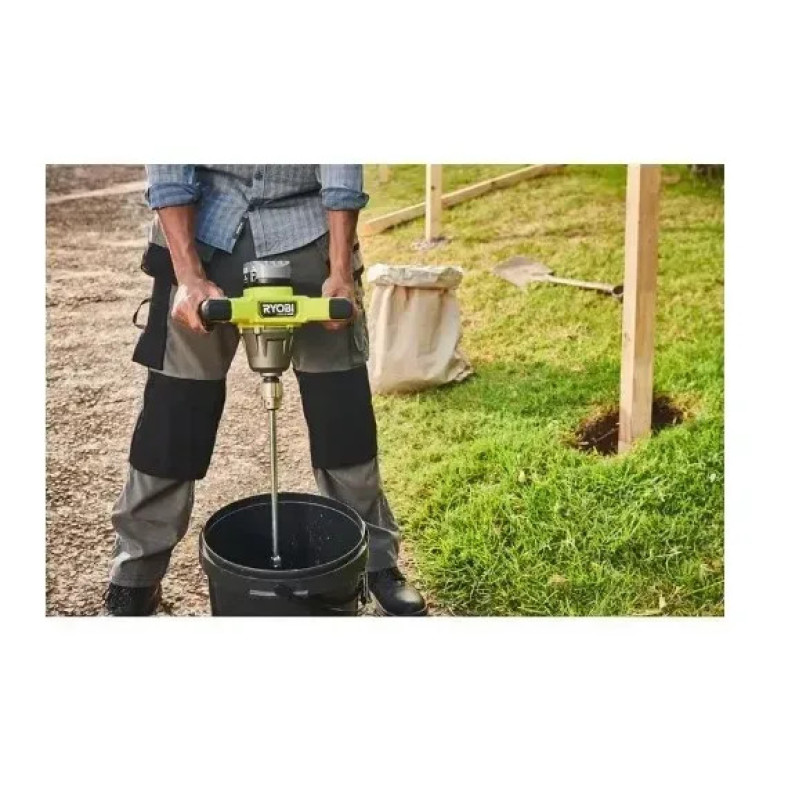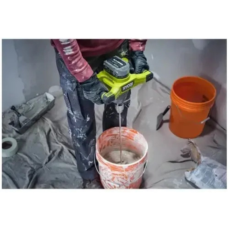 Ryobi RPM18X-0 HP ONE+ 18 V cordless construction mixer is a powerful brushless tool for professional and DIY mixing of paints, mortars, adhesives and other compounds without a power cord.