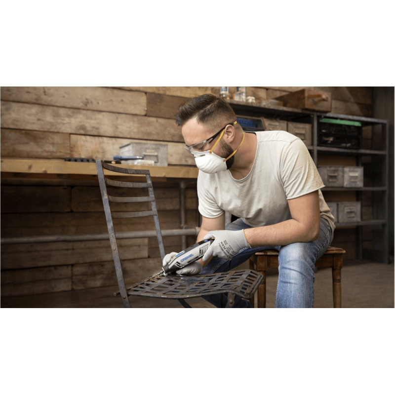 The Dremel 4250 3-45 Sanding and Engraving Machine is a corded, multi-purpose tool for cutting, sanding, engraving, and polishing. It is equipped with a 175-watt motor that ensures consistent performance under load. The speed range of 5,000–35,000 rpm allows you to adjust the mode depending on the material. The EZ Twist system simplifies accessory changes without the need for a wrench.
