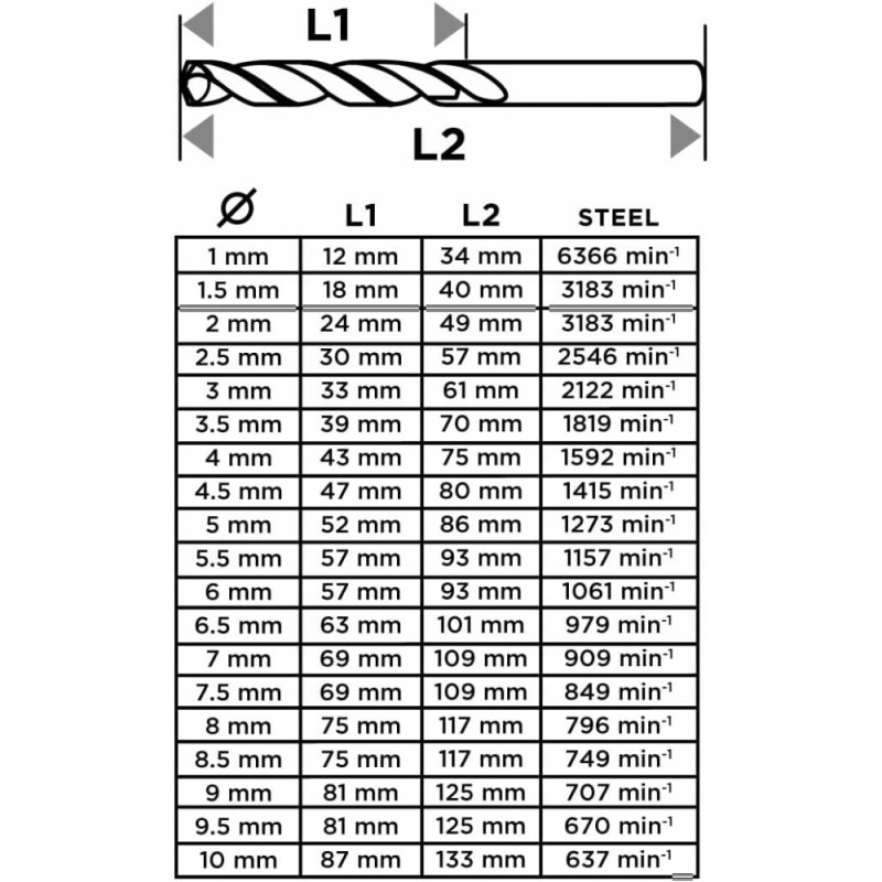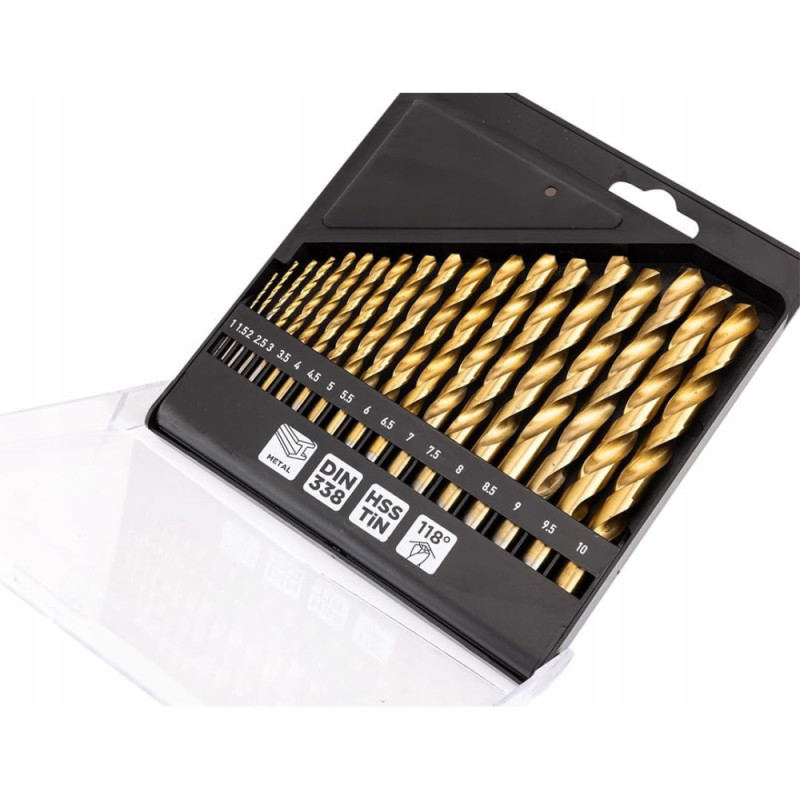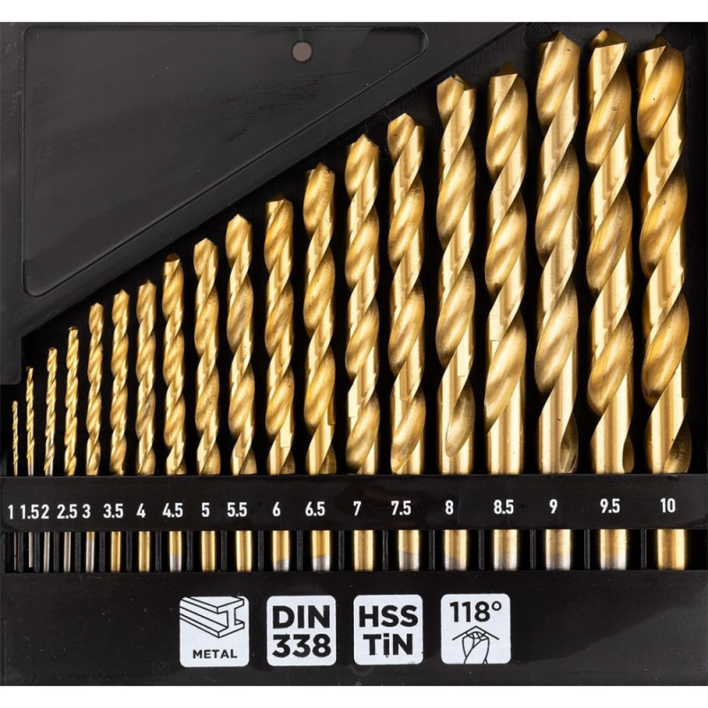 The GRAPHITE HSS TiN metal drill bit set covers a wide range of diameters for precise drilling tasks. Titanium nitride coating improves wear resistance and helps maintain sharp cutting edges. The set is an optimal solution for workshop, installation and repair work.