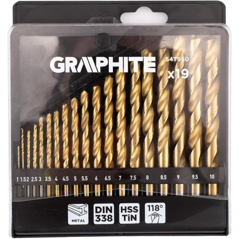 Graphite Набір свердел по металу GRAPHITE HSS TiN 1-10мм кейс 19шт (54T950)