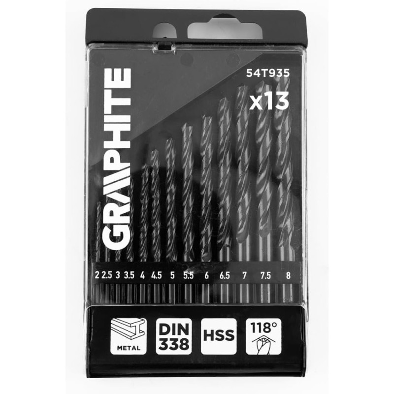 The GRAPHITE metal drill bit set includes the most common sizes for installation and repair tasks. High-speed steel ensures reliable drilling and clean holes. The compact case keeps the bits organized and easy to access.