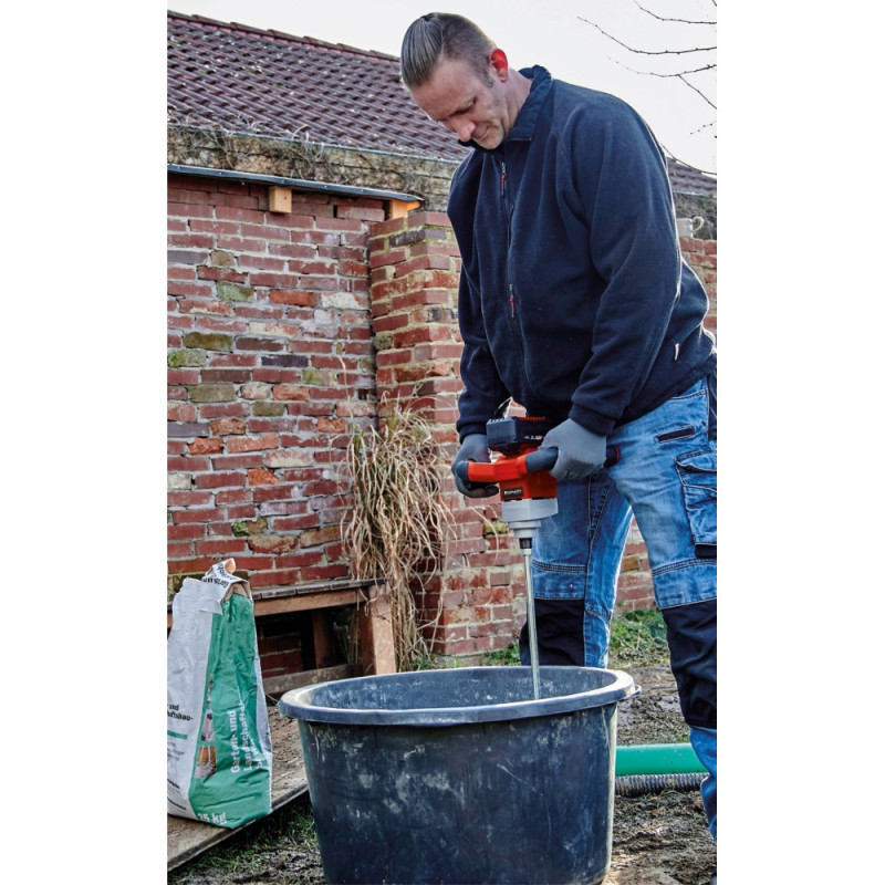 Einhell KWB mixer whisk (497635) — attachment with 600 mm length and 120 mm diameter, M14 thread for paint mixing. Head radius measures 20 mm for uniform material blending. Weighs 1.1 kg to ease handling during tasks. Designed for compatibility with Einhell KWB mixers. This setup fits construction work with liquid compounds.