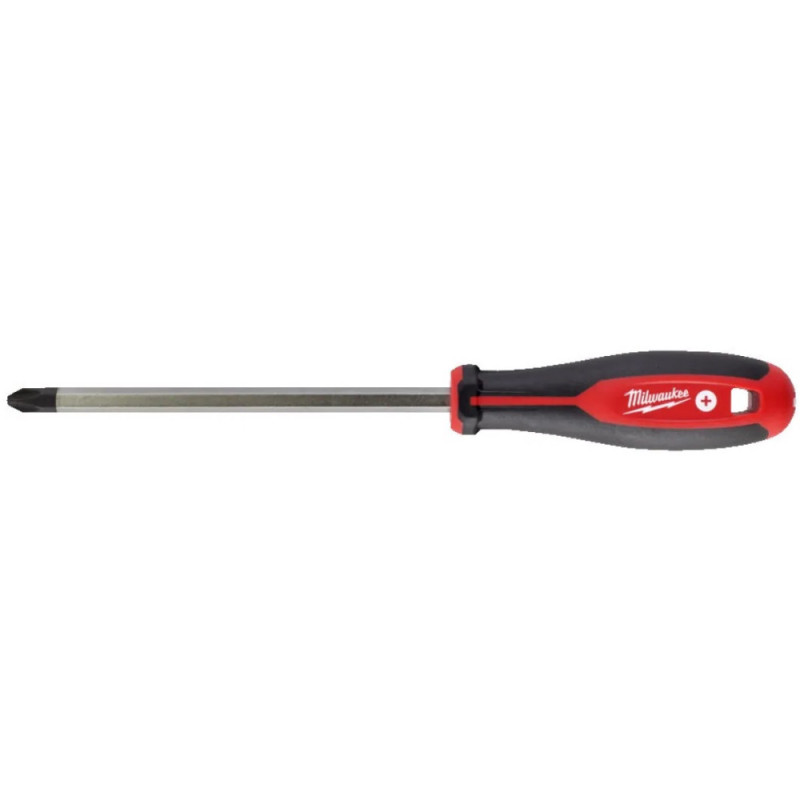 The Milwaukee magnetic screwdriver PZ3x150 mm 4932471794 is a hand tool with a Pozidriv PZ3 tip designed for fastening and loosening compatible fasteners. Its magnetic tip helps hold screws securely during use. A three-lobe ergonomic handle enhances grip comfort and torque transfer. With a 150 mm shaft, this screwdriver reaches into confined spaces.