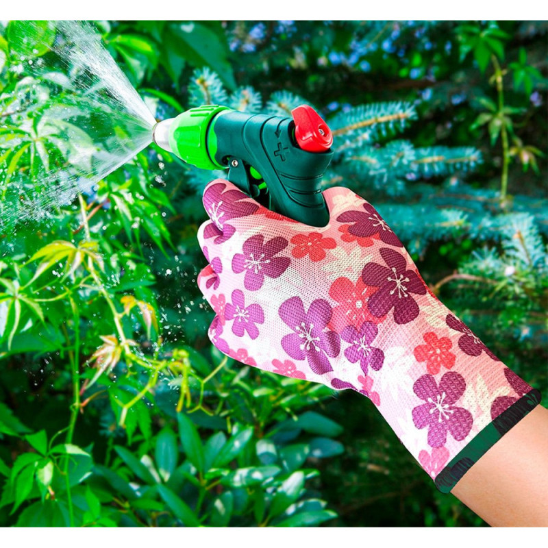 The Verto 97H147 work gloves are designed for gardening and household tasks. The polyester base is combined with a nitrile coating for improved durability. The breathable fabric enhances comfort during extended use. An elastic cuff provides a secure fit and helps prevent dirt entry. The floral pattern adds a distinctive design element.