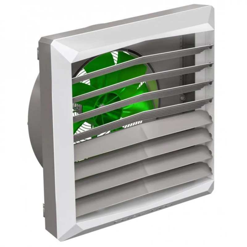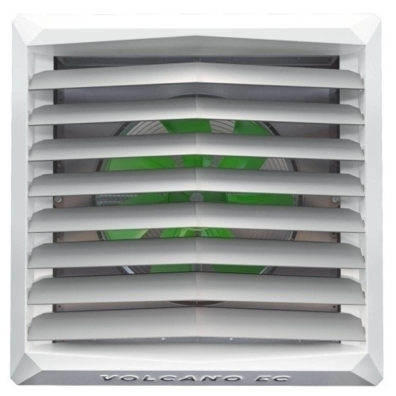VOLCANO VR-D with energy-efficient EC motor delivers 6500 m³/h airflow for effective room ventilation without heating element. Horizontal throw reaches 28 m, vertical 15 m, ensuring even distribution in large areas. EC electric motor at 0.37 kW, 1380 rpm, and 1.7 A nominal current operates on 230 V for economical performance.