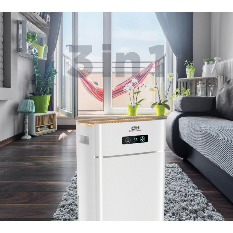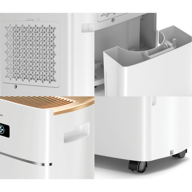The Cooper&Hunter CH-D014WD8-30LDWF dehumidifier is designed for rooms up to 100 m² with a capacity of 30 liters per day. It features electronic control, LED display, Wi-Fi, and a 24-hour timer. Functions include air ionization, multiple operation modes, and a 5-liter tank with automatic shut-off when full. Convenient wheels make it easy to move between rooms.