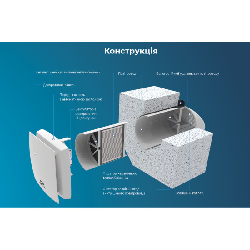 The Cooper&Hunter Easy Vent CH-HRV070K-WF recuperator with 70 m³/h airflow creates controlled ventilation with up to 92% heat recovery. The ceramic heat exchanger retains energy in winter and cooling in summer, while two modes (recovery and ventilation) adapt to needs. Wi-Fi control via app enables remote operation. Wall mounting in 230–420 mm thick walls simplifies installation. This device optimizes microclimate for apartments and offices.