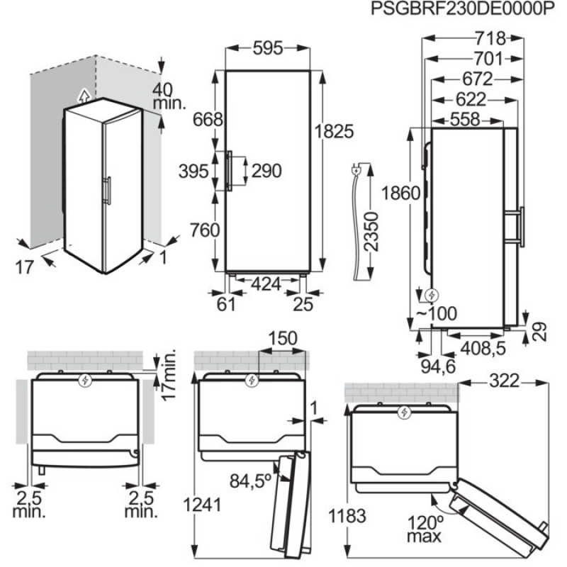 Electrolux Freezer, 186x60x65, 278 l, E, NF, inv., stainless steel (LUS7ME28X)