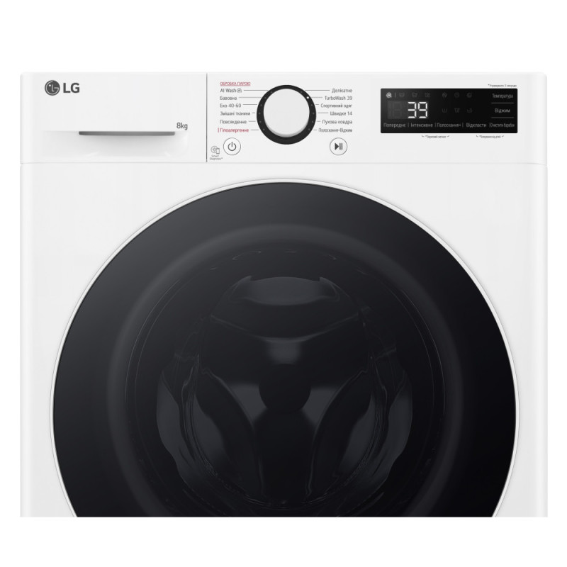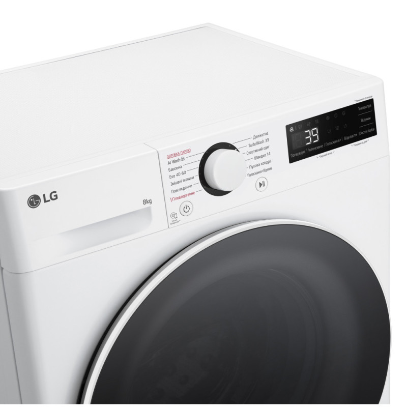 LG WM front load, 8kg, 1200, A, 48cm, display, steam, invertor, white (F2Y5PS0W)