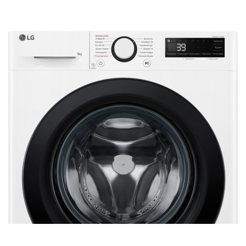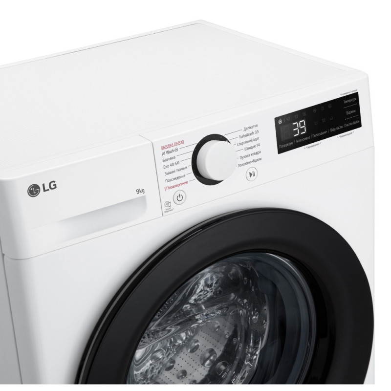 LG WM front load, 9kg, 1200, A, 48cm, display, steam, invertor, white (F2Y5FS6W)