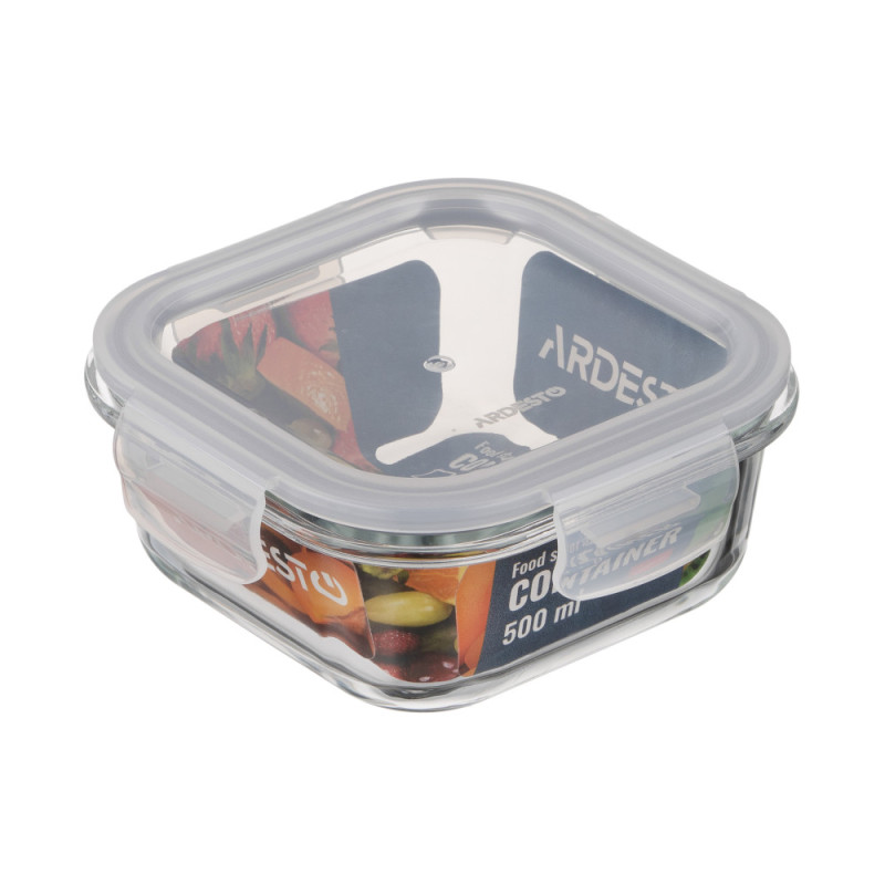 ARDESTO Food storage container Gemini 0.5l, borosilicate glass, plastic, square, transparent (AR1250BSQ)