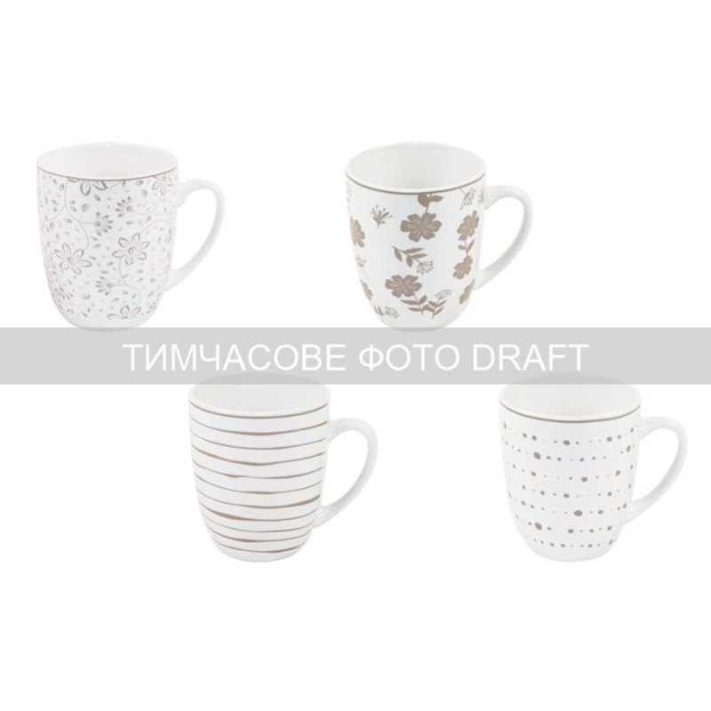 ARDESTO Set of mug Ravenna, 4pcs, 360ml, porcelain, white-beige (AR1336RS)
