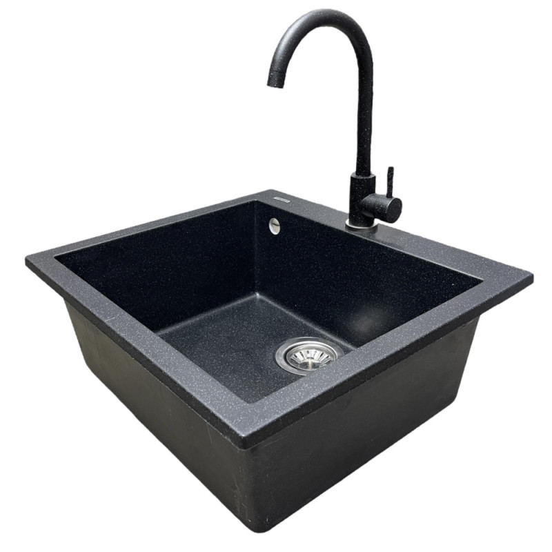 Adamant Kitchen sink Univer, artificial stone, square, no drainboard, 560х500х200mm, bowl - 1, over-mounted, black (000000629)