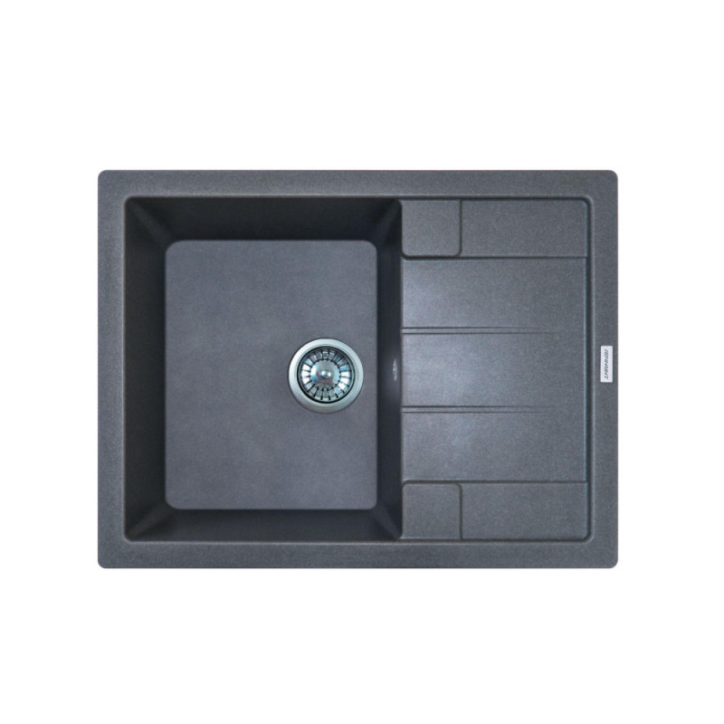 Adamant Kitchen sink Anila, artificial stone, rectang., with drainboard, 645х495х200mm, bowl - 1, over-mounted, grey (100001387)