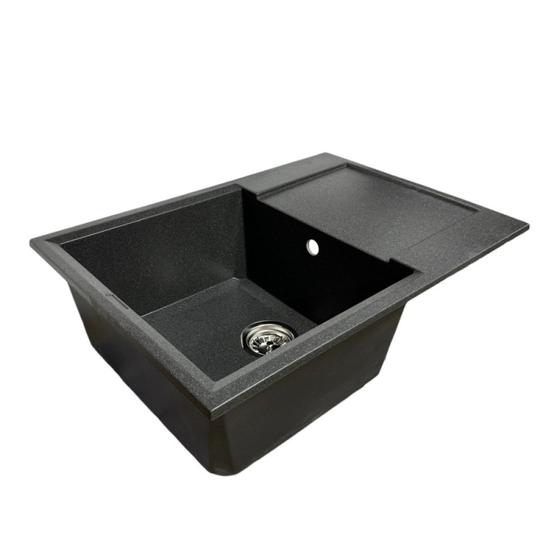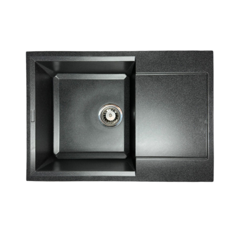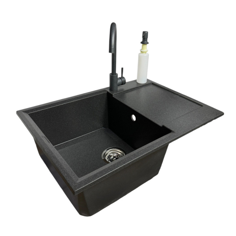 Adamant Kitchen set Horizon Medium, artificial stone, rectang., with drainboard, 700х500х230mm, bowl - 1, over-mounted, graphite + mixer and dispenser (4824296104513)