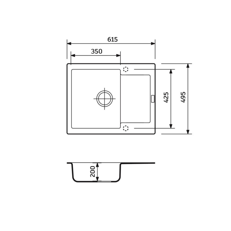 The Adamant Minimal set includes a rectangular inset artificial-stone sink with a wing, a faucet and a dispenser, creating a complete and practical kitchen solution. The deep bowl offers comfort when handling large cookware and daily tasks. The Solid Surface material provides resistance to scratches, heat and stains. The wing area expands the usable workspace and enhances convenience.